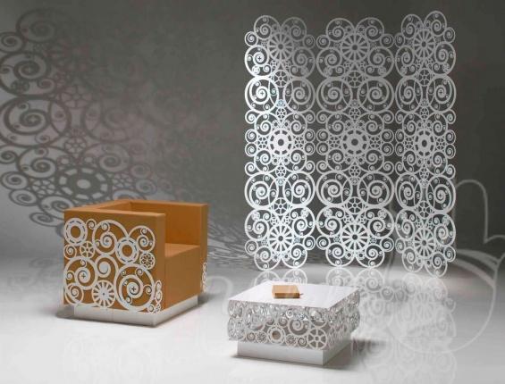 كما نعرض لكم أيضاً تصميماً مميزاً وفريداً من Dentelles & Bidons حيث تم إعادة تدوير حاويات الزيت الاسطوانية وحفرها بطريقة فنية مذهلة على شكل أثاث يمكن استخدامه داخل المنزل أو خارجه. أيّاً كان خياركم لاستخدام الدانتيل فإنه بالتأكيد سوف يضيف اللمسة الأنيقة على منازلكم لكي يجعلها أكثر نعومة وجمالاً.