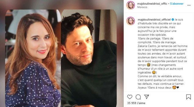 احتفلت الممثلة مجدولين الإدريسي بالذكرى العاشرة لزواجها، واختارت بهذه المناسبة أن توجه رسالة خاصة لزوجها وأن تنشر لأول مرة صورته.