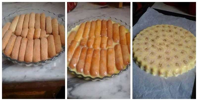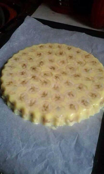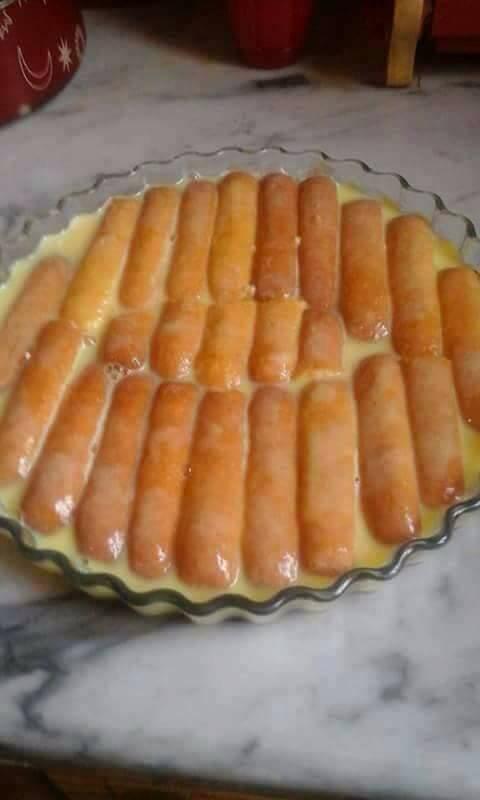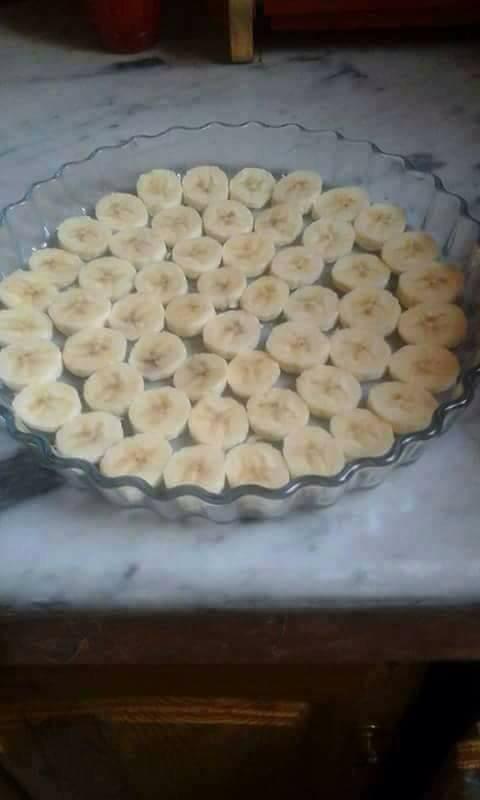 فزكي البسكويت فالحليب بالفلان ويرص فالمول فوق طبقة من الموز مقطع وصبي خليط الحليب المتبقي ويزين حسب الذوق،يوضع في الثلاجة ويقدم بارد.
