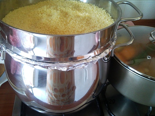 – التفويرة الثانية نصب عليه ماءا قليلا ونحرك حتى تبان لينا كل الحبات هي هاديك الى الكسكاس