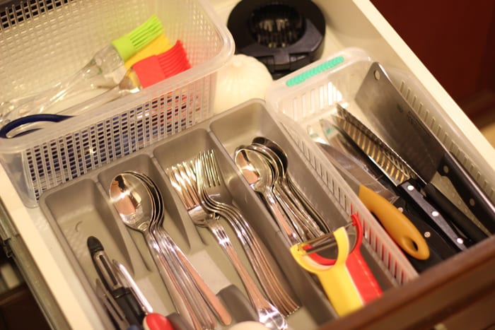 لا تنسي أنه يمكنك اعتماد الأدراج التي ستساعدك كثيرا في حل مشكلة الأغراض الكثيرة، كما يمكنك ترتيب الوحدات البلاستيكية بطريقة سهلة وذلك عن طريق وضع الصغيرة داخلة الكبيرة لتوفير المساحة.