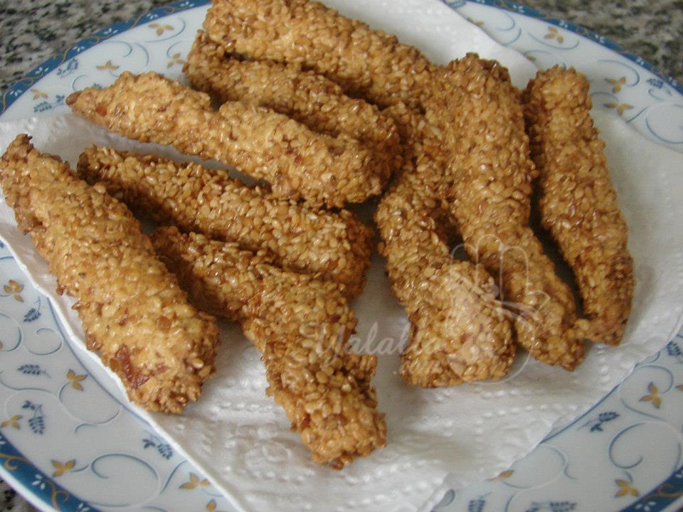 أصابع الدجاج المقرمشة بالسمسم