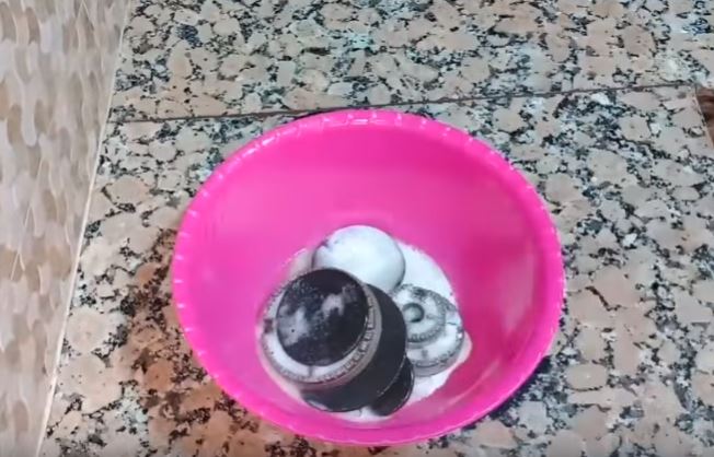 والبوطاغاز ارش البيكاربونات والخل واتركها قليلا ثم أفرك.