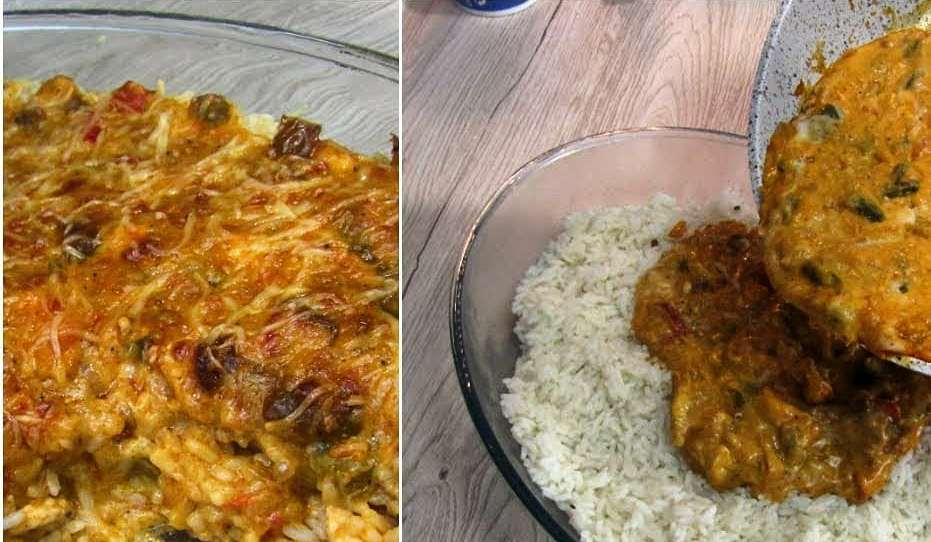 ألذ عشاء أو غداء لن تستغني عنه أبدااا صينية أرز خطيييرة بصلصة الدجاج في الفرن