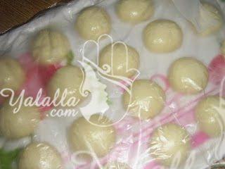 نشكل عجين الملويات كويرات ونتركهم يرتاحو ونغطيهم ببلاستيك