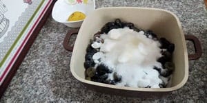نرفع درجة حرارة الغاز ونترك السكر يغلي على النار لمدة عشر دقائق تقريباً. نطفئ على الغاز ونفرغ المربى في مرطبان بعد أن يبرد ونحفظه بعد ذلك في الثلاجة.