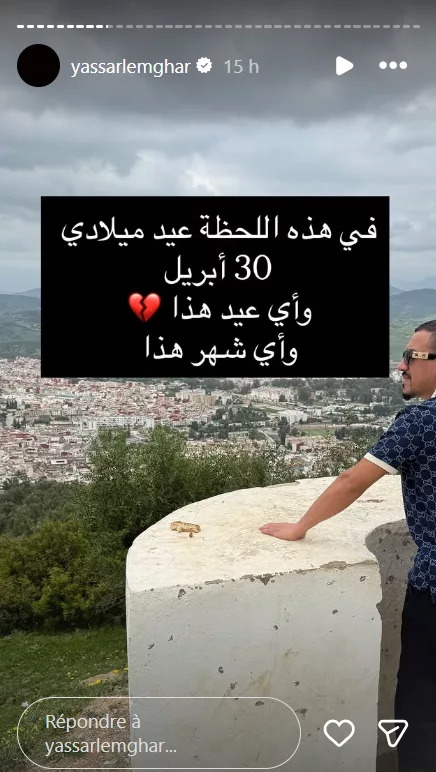 شارك لمغاري متابعيه عبر حسابه الشخصي على إنستغرام تدوينة مؤثرة، عبّر فيها عن مشاعره المتضاربة، متسائلاً بصدق عن معنى الاحتفال في ظل هذا الفقد الكبير، وكتب: “في هذه اللحظة عيد ميلادي 30 أبريل.. وأي عيد هذا، وأي شهر هذا”، في كلمات قصيرة لكنها تحمل ألماً كبيراً وتطرح سؤالاً وجودياً عن الفرح بعد الرحيل.