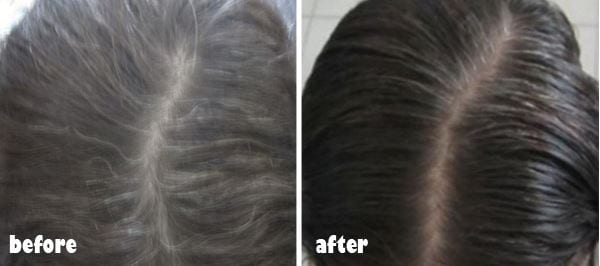 يوضع هذا الخليط على الشعر وفروة الرأس ويبقى لمدة 30دقيقة ثم يشطف بالماء العادي