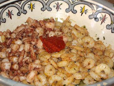 وناخد شي زلافة كبيرة نجمعو فيها جميع المقادير بما فيهم القيرميسيل والهريسة والفرماج