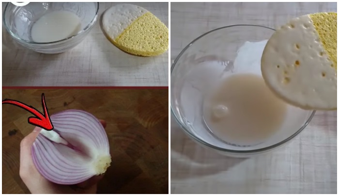 في اناء مناسب،ضعي ملعقة كبيرة من الياغورت الطبيعي،اضيفي اليه ملعقة كبيرة مع ماء البصل،قومي بمزج المكونات حتى تتجانس مع بعضها البعض،طبقي هذه الوصفة تحت الابطين وبين الفخدين باسفنجة،قومي بالمسح على المناطق عدة مرات.