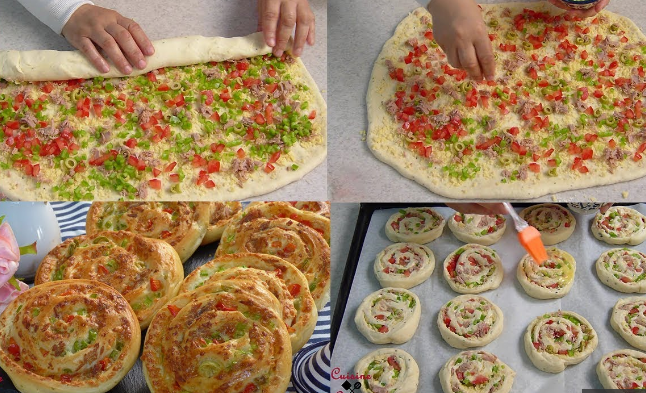 بيتزا رولي بعجين الحليب وحشوة الفلفل والجبن