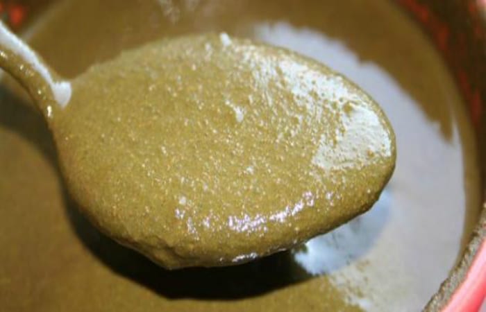 قومي بوضع الحلبة في في وعاء وضيفي لها الكركم ثم قومي ماء الورد تدريجيا حتى تحصلين على قوام كالعجين ، ثم قومي بتطبيق الماسك على بشرة وجه نظيفة جيدا واتركيه لمدة 20 دقيقة حتى يجف ثم بللي أطراف أصابعك وقومي بفركه ثم اغسلي وجهك بالماء البارد .