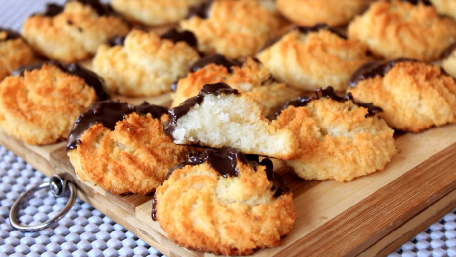 في اناء مناسب،قومي بخلط مسحوق جوز الهند مع نستلي ،اضيفي اليه مخفوق ابيض البيض وقومي بخلط المكونات جيدا،قومي بتشكيلها وتدخل للفرن لمدة 35 دقيقة على نار هادئة،اخيرا تزين بالشوكولا.