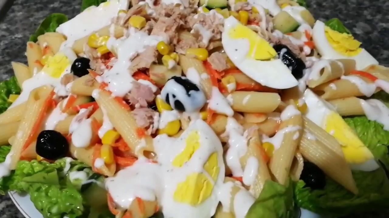 سلطة بالمعكرونة والخضر وصلصة الياغورت الطبيعي