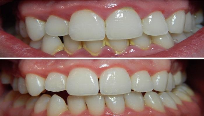 جير الاسنان و هو ما يتسبب في اصابتها بالاصفرار هو عبارة عن رواسب غير عضوية تتراكم على الاسنان بسبب بداية اللعاب ثم الاطعمة و المشروبات التي يتم تناولها مع عدم الاهتمام بغسل الاسنان بشكل منتظم و العناية بها فيؤدي ذلك الى اصابة اللثة بالامراض و ظهور الفم و الاسنان بمظهر سئ , كذلك يمكن ان يتسبب في ظهو رالرائحة الكريهة للفم , تعتبر بالطبع افضل الطرق و اكثرها فاعلية هى التوجه للطبيب كي يقوم بعملية التنظيف للاسنان الا انه يمكن اتباع بعض الطرق في المنزل بشكل دوري و هى تساعد في التخلص من طبقات الجير التي تتكون مما لا يسمح بتراكم طبقات متتالية من الجير مما يحافظ على الاسنان و صحة الفم بشكل عام , لكن هذه الطرق تساعد في التخلص من الجير الظاهر المرئي و الذي يوجد على طبقة مينا الاسنان و فوق خط اللثة اما الجير المختفي تحت اللثة فيصعب على الطرق المنزلية الوصول اليه و هنا يجب اللجوء الى الطبيب للقيام لعملية التنظيف .