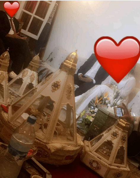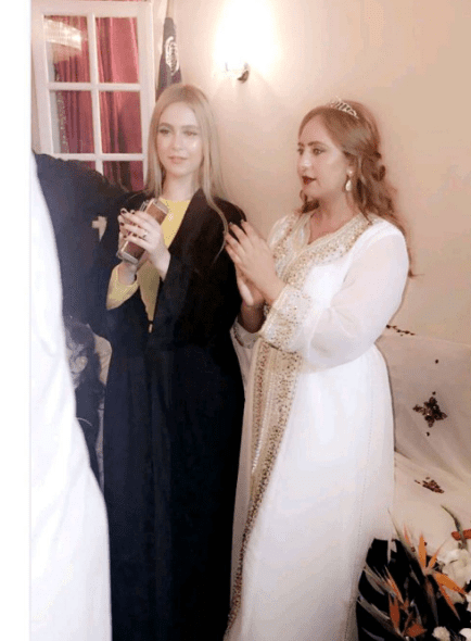وحرصت مريم على الاحتفال بخطوبتها وسط أجواء وعادات وتقاليد مغربية رائعة، وارتدت قفطانا لونه ابيض وبه نقوشات ذهبية، مع تاج بسيط على رأسها.