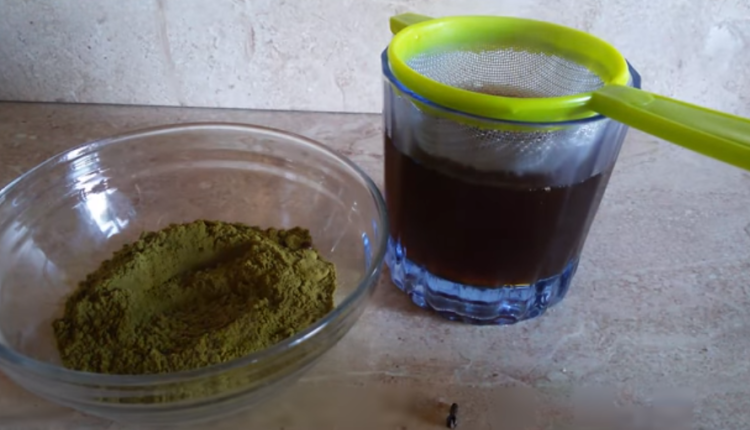 قومي بخلط الحناء بهذا المحلول جيدا،اتركيها تنقع لمدة ساعة،ثم طبقيها على خصلات الشعر من الجذور الى الاطراف،اتركيها لمدة ساعتين ثم يغسل الشعر.