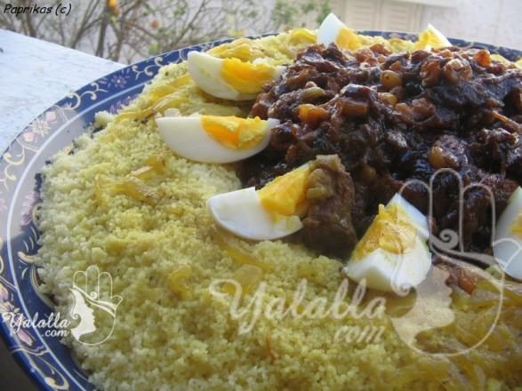 طرق تقديم الكسكس المغربي الحلو بالبصل والزبيب ” التفاية”