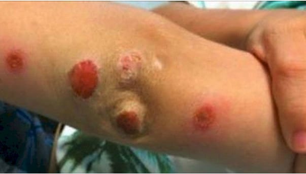 عندما عاد أولاد براندا إلى المنزل من حفلة التخرج في المدرسة، كان كل شيء بخير.. بعد يومين بدأت تظهر تبقعات وتقرحات جلدية.. في البداية ظنت الأم أنها جروح ناتجة عن التزحلق ..ولكن المراهم التي وضعتها للجروح لم ينفع البتة بل ازدادت انتشارا وتنامياً لا بل بدأت تنزّ.