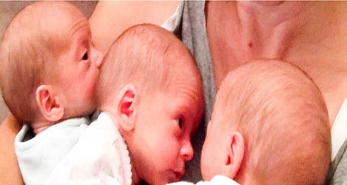 لقد أنجبت هذه السيدة صبيين وبنتاً في الأسبوع 34 على الحمل وكان الأولاد الثلاثة في صحة جيدة.