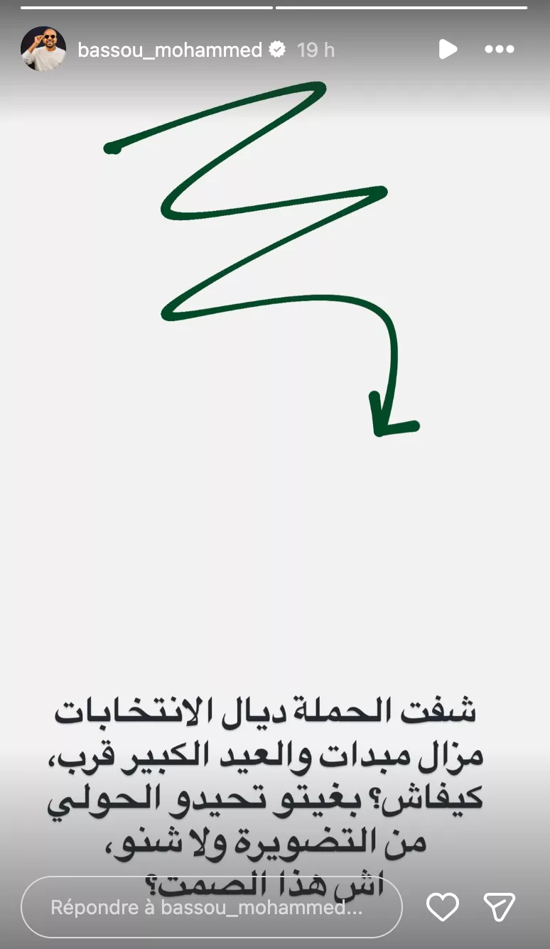 قال باسو في تدوينته: “شفت الحملة ديال الانتخابات مزال مبدات والعيد الكبير قرب.. كيفاش؟ بغيتو تحيدو الحولي من التضويرة ولا شنو.. آش هاد الصمت؟”، في إشارة فكاهية إلى تأثير الاستحقاقات الانتخابية على القدرة الشرائية للمواطنين، خاصة في ظل الاستعدادات المكلفة لعيد الأضحى، وكأنه يلمح إلى أن المواطنين هذه المرة سيكونون في “إجازة” من أعباء الحملات!