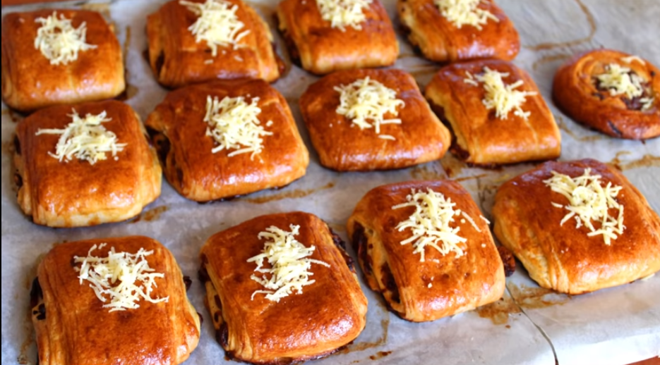مسمن على شكل بتي بان بحشوة اللحم المفروم و صلصة الصوجا