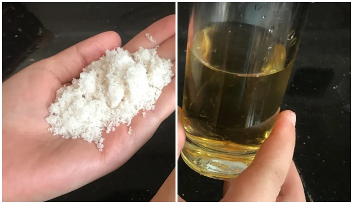 في وعاء مناسب،ضعي الماء الدافئ مع المكونات المذكورة،بعد ذلك ضعي قدميك في هذا الخليط لمدة 15 دقيقة،هذه الطريقة تخلصكم من السموم المتراكمة على مر السنين.