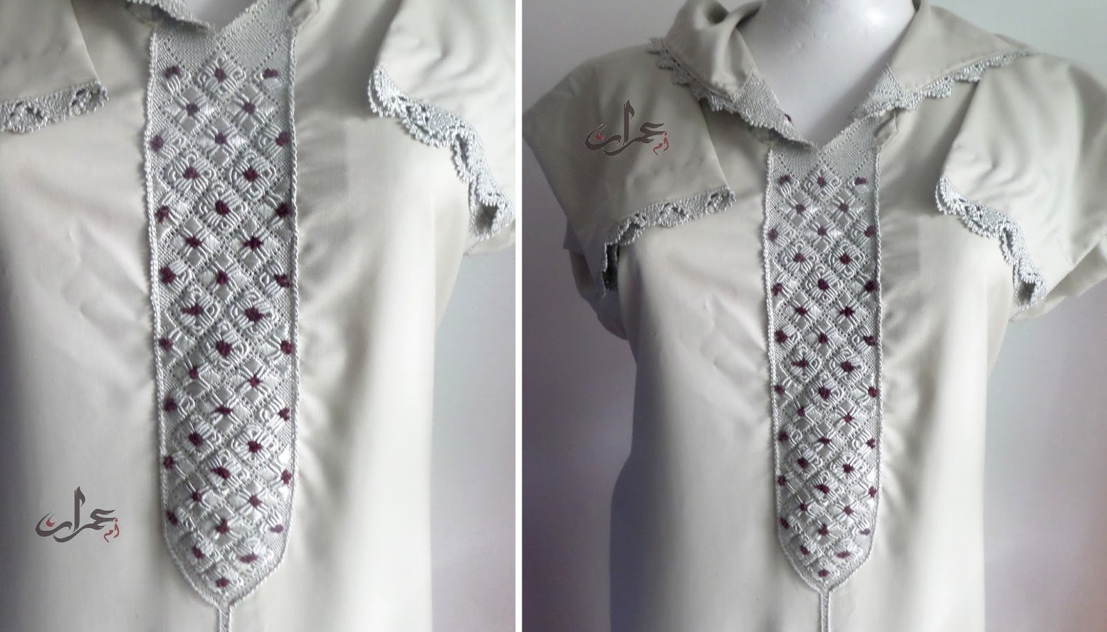 سنرى و اياكم إستعراض لموديل بالراندة على جلابة مغربية بنص الطوق عريض بـ 36 غرزة والخيط على ثلاثة الشعرات مع الطرز بالبريد والغرزة الفرنسية وضريس كبير وراقي على الكمام والقب كنتمنى تعجبكم و دائما من ابداع المعلمة في فن الراندة ام عمران