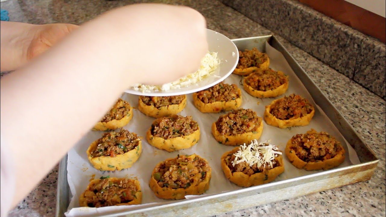 <مطبخ حليمة الفيلالي يقدم لكم بطاطس محشية كوجبة غذاء او عشاء لذيذة وسهلة التحضير ممكن مرافقتها بصلصة طماطم.