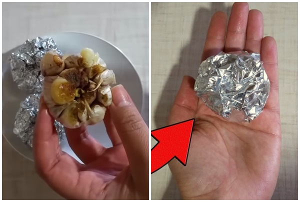 ضعي راس الثوم في قطعة من ورق الالومينيوم،اضيفي اليها القليل من الزعتر بودرة،وبضع قطرات من زيت الزيتون،قومي باغلاق ورق الالومينيوم وضعيها في فرن ساخن لمدة 30 دقيقة.