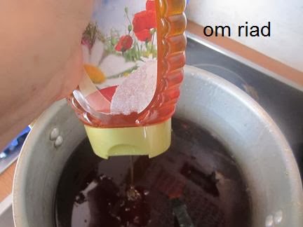 من بعد نصب قليل من العسل مرة أخرى في الطبق و نخليوه يبرد حتى نحصل على عسل بهذه الكثافة